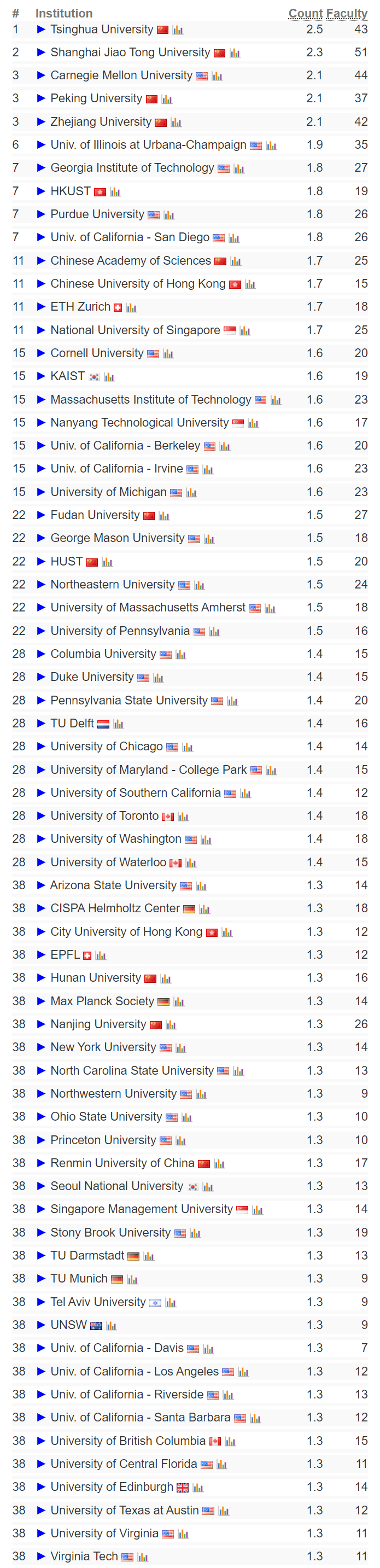 中国高校强势兴起:大学、上海交通大学、浙江大学、大学位列前五,Top20的院校有卡耐基梅隆大学(世界第10);美国方面,中国院校中,美国的卡耐基梅隆大学和大学奥斯汀分校别离位列世界第一和第二。